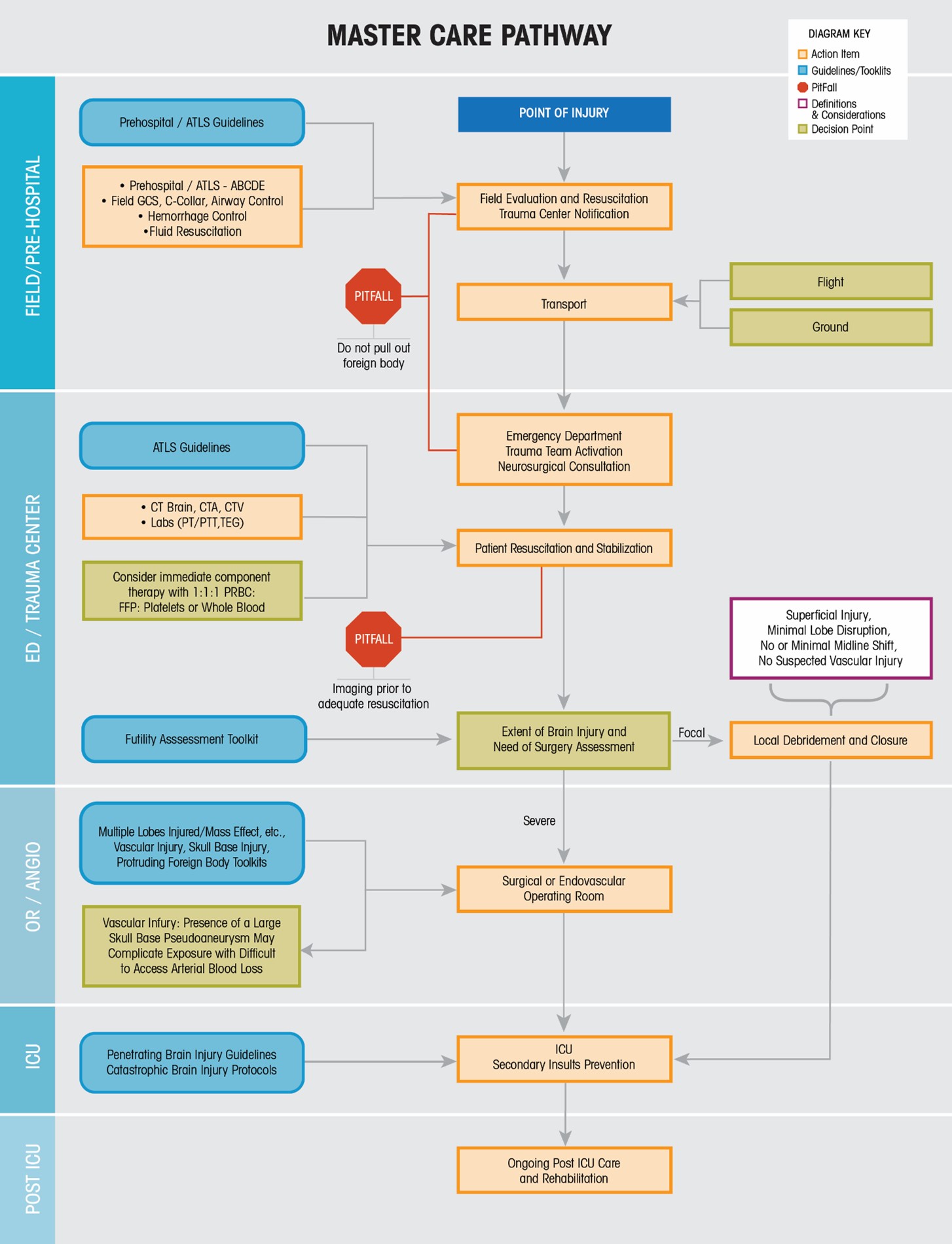 Care of patients with pTBI starts in the pre-hospital setting at the point of injury